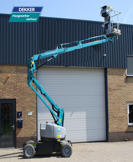 Deze zelfrijdende knikarmhoogwerker, aangedreven op accu’s, is zeer geschikt voor binnengebruik. Daarnaast is het ook mogelijk om deze machine buiten te gebruiken. Moet u boven een machine werken of moet u een afstand overbruggen binnen in uw magazijn, dan is deze machine zeer geschikt. Bovendien is deze machine voorzien van non marking banden, zodat er geen strepen op uw bedrijfsvloer achter blijven. De machine heeft een werkhoogte van 12 mtr en is alleen te gebruiken op een stabiele ondergrond en kan dus niet worden ingezet op ruw terrein. Verder is deze hoogwerker ideaal voor bedrijven in de voedingsmiddelen, industrie werkzaamheden en evenementen. Wilt u meer informatie over deze hoogwerker? Bel dan naar onze vestiging te Harderwijk op 0341 45 49 81