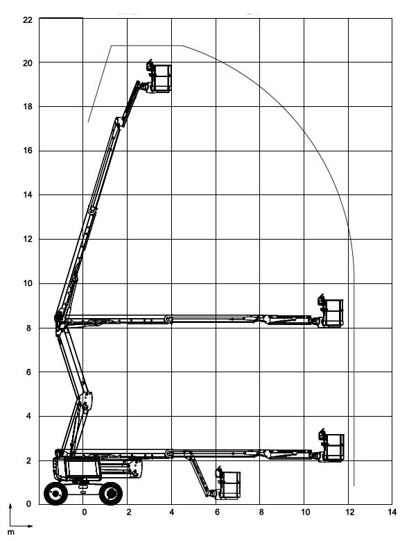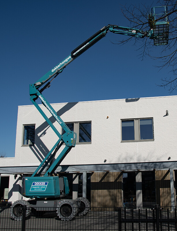 Deze zelfrijdende knikarmhoogwerker (Haulotte HA20 RTJ PRO) is aangedreven op diesel en is geschikt voor buitengebruik. Deze knikarmhoogwerker is in te zetten op meerdere ondergronden, zowel een vlakke ondergrond als een ruw terrein. Bovendien kunnen wij ook rijplaten bij de hoogwerker leveren, zodat bijvoorbeeld niet uw hele gazon wordt vernield. Deze hoogwerker bereikt een werkhoogte van bijna 21 meter en is geschikt voor onder andere evenementen, het snoeien van bomen, schilderwerkzaamheden en industriële werkzaamheden. Wilt u nog meer informatie over deze hoogwerker? Bel dan naar onze vestiging te Harderwijk op 0341 45 49 81