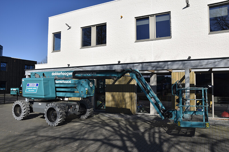Deze zelfrijdende knikarmhoogwerker (Haulotte HA20 RTJ PRO) is aangedreven op diesel en is geschikt voor buitengebruik. Deze knikarmhoogwerker is in te zetten op meerdere ondergronden, zowel een vlakke ondergrond als een ruw terrein. Bovendien kunnen wij ook rijplaten bij de hoogwerker leveren, zodat bijvoorbeeld niet uw hele gazon wordt vernield. Deze hoogwerker bereikt een werkhoogte van bijna 21 meter en is geschikt voor onder andere evenementen, het snoeien van bomen, schilderwerkzaamheden en industriële werkzaamheden. Wilt u nog meer informatie over deze hoogwerker? Bel dan naar onze vestiging te Harderwijk op 0341 45 49 81